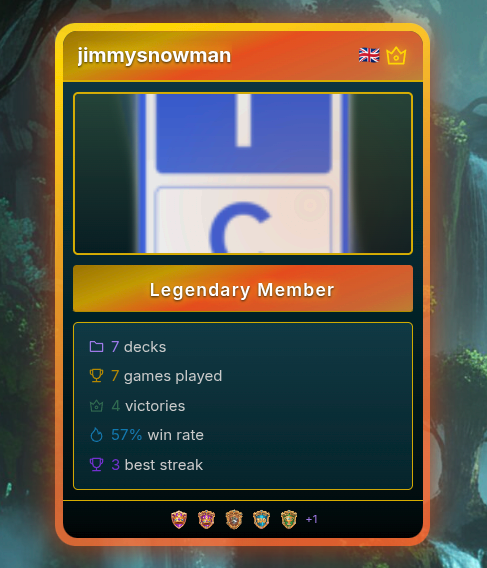 Reach the top of the ranked ladder and your profile shows it. The Legendary rank badge is exclusive to supporters — a permanent mark of where you've been.