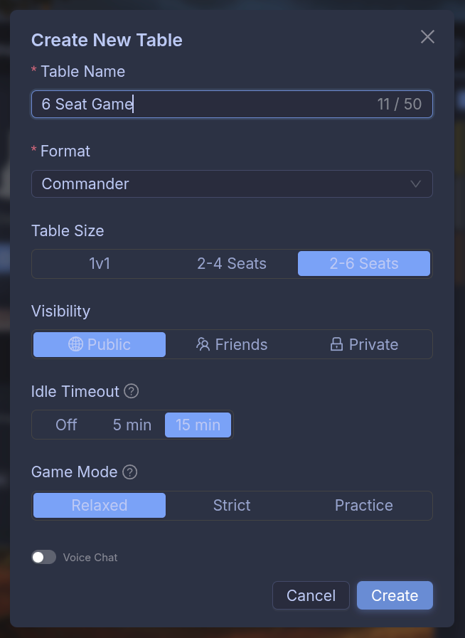 Private Voice Chat Per Table