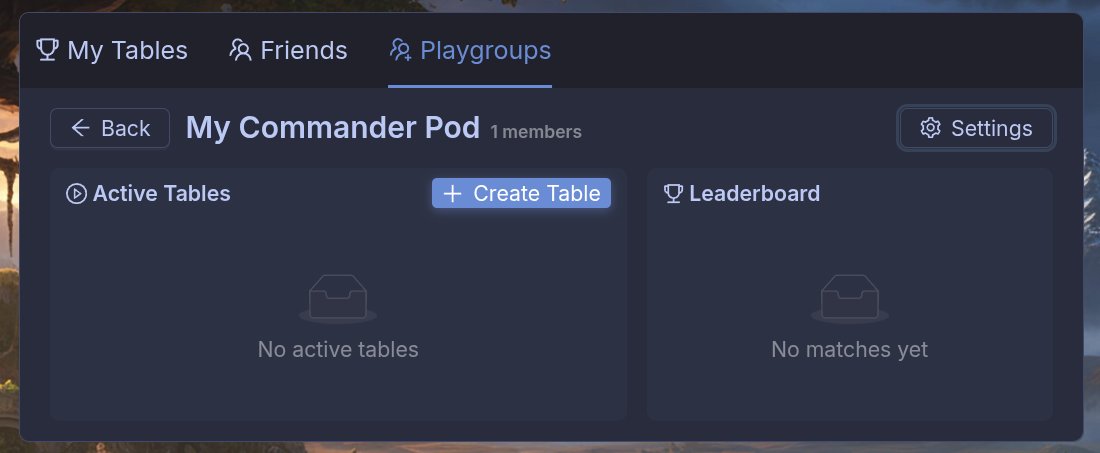 Build a home for your regular crew. Playgroups give you a shared space with your own members, games, and history — whether that's a local group, a Discord server, or just your weekly game night.