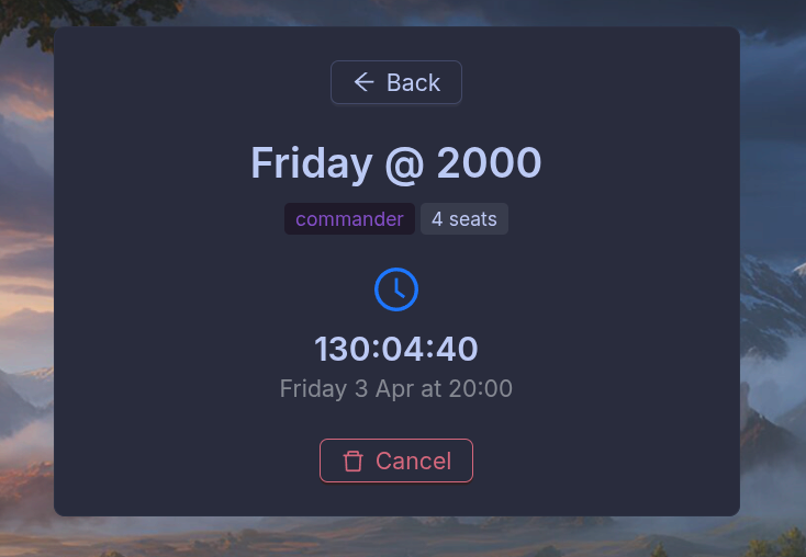Plan ahead. Set a date and time for your table, share the link, and your group shows up ready to play. No more last-minute "who's free tonight?" scrambles.