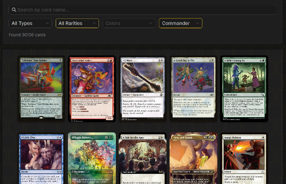 Use the search bar to find cards by name, text, or type. You can also use the standalone card search page.