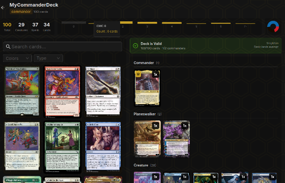 Note: Your commander's color identity restricts which cards you can add. Cards outside your commander's colors will be flagged.